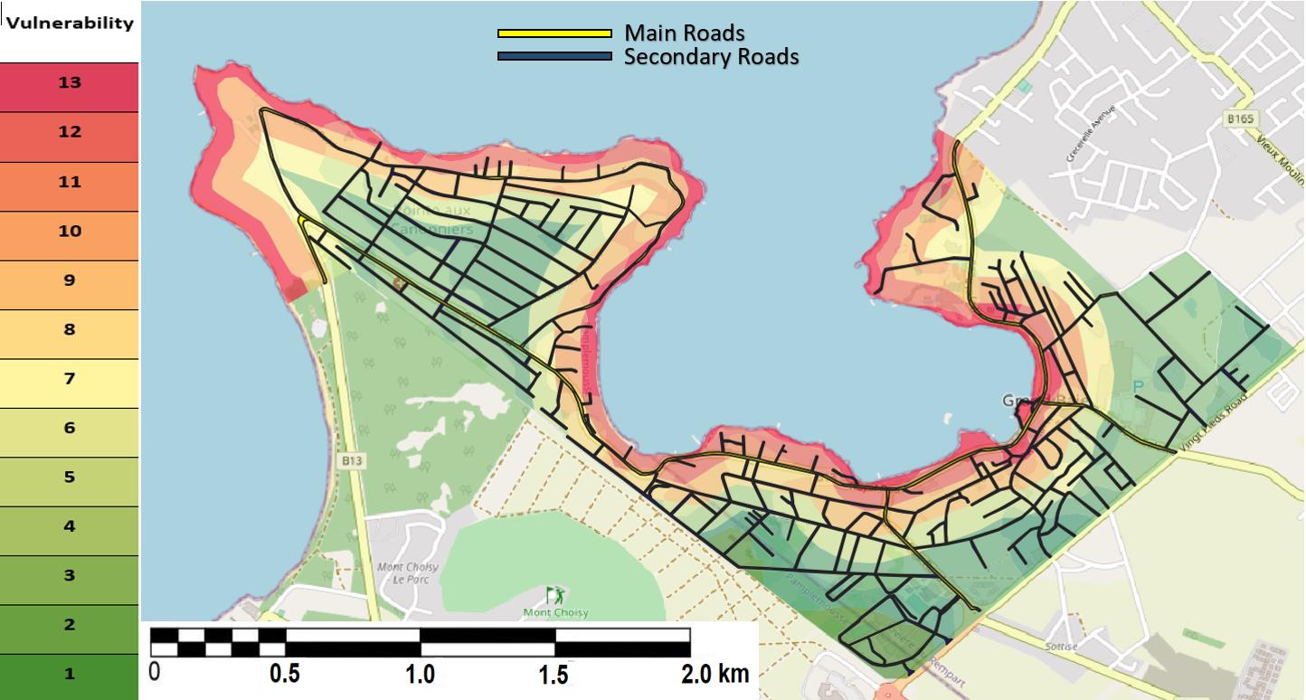 Figure 9: Vulnerability overlay on road network