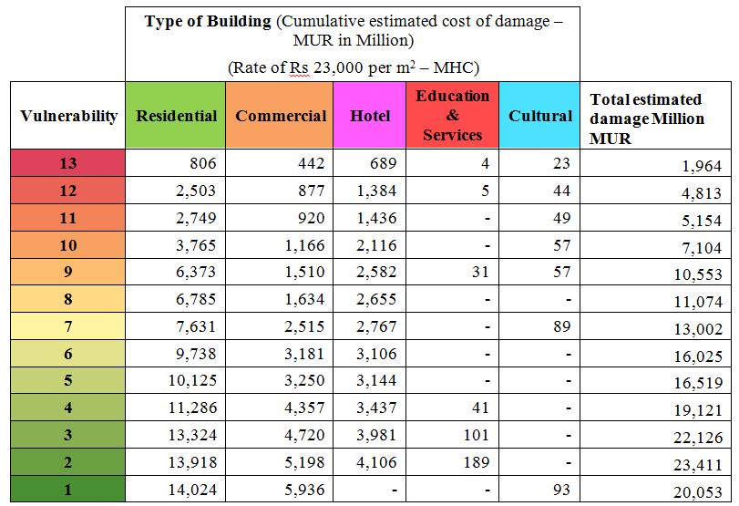Table 7: Cost of damage to buildings relative to vulnerability index