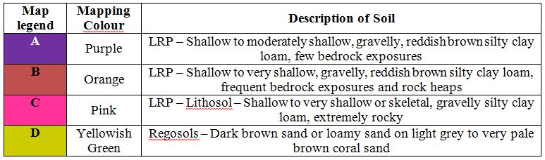 Saline water infiltration [20] causes impairment of the natural ground water and fresh water bodies used for consumption and irrigation in the northern region of Mauritius. Saline water infiltration is also closely related to the soil characteristics (Table 11) where Regosols represented in yellowish green have a higher permeability and are more prone to allow sea water seepage into the ground water aquifer. Figure 10 illustrates the overlay of vulnerability indices on the soil characteristics map of Grand Bay. This resulted in the computation of the area of lands (detailed in characteristics) and their respective vulnerability as detailed in Table 12. As a result of the study, 0.35 km2 of total area is within the highest vulnerability where the land is mostly composed of Regosols which is a dark brown sandy type characterised as highly permeable.
