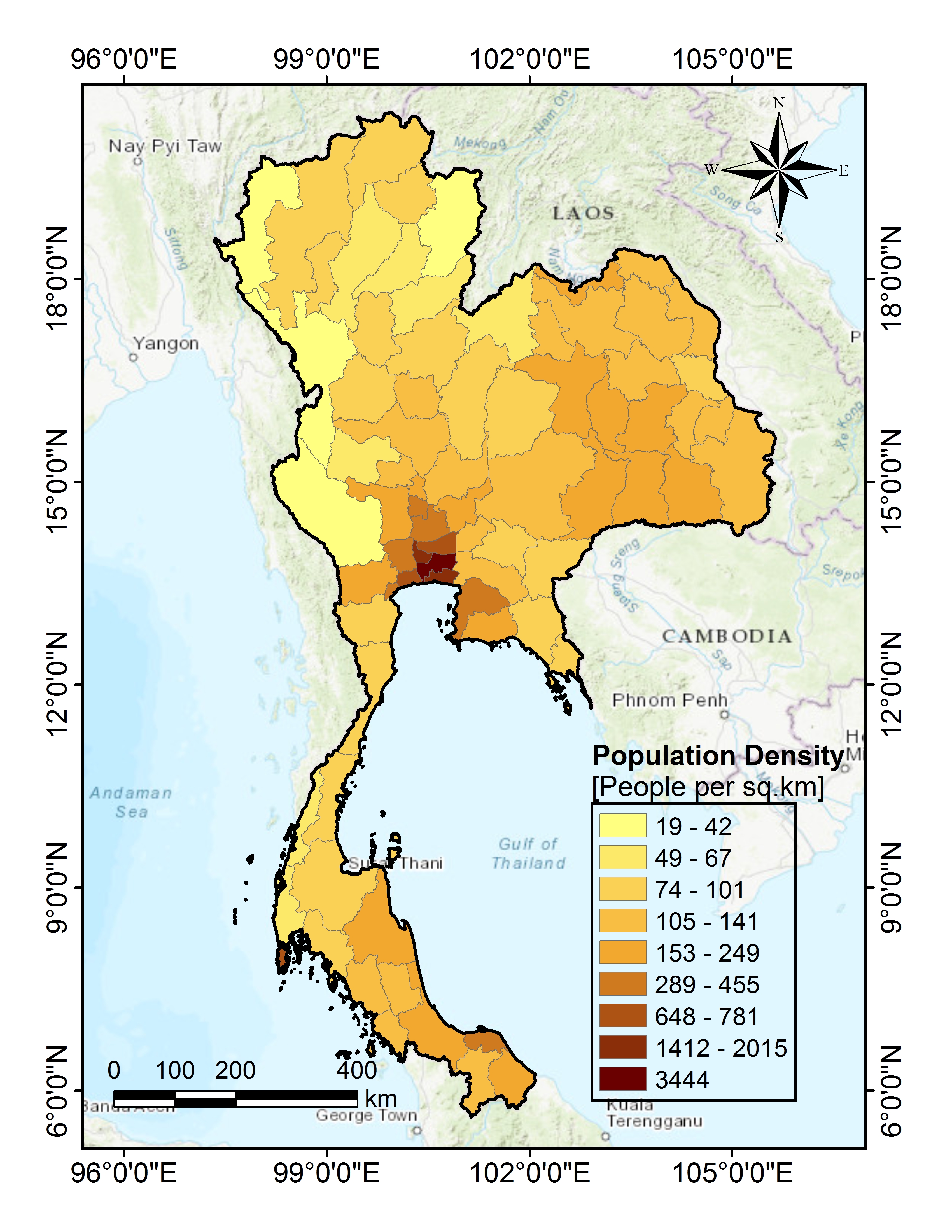 Figure 1: Population Density of Thailand 2023