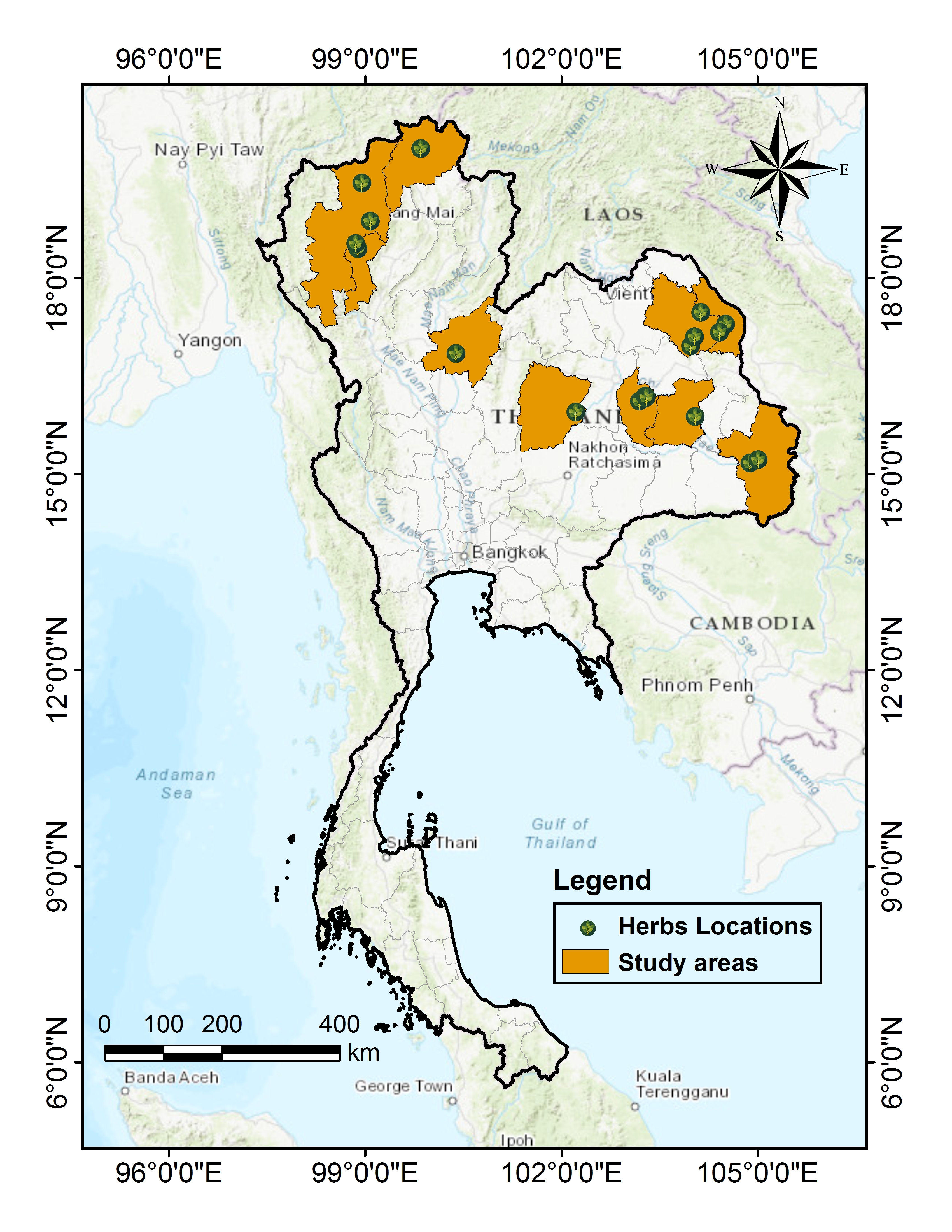 3.1.4 Locations of Ficus carica and Tiliacora triandra in Thailand