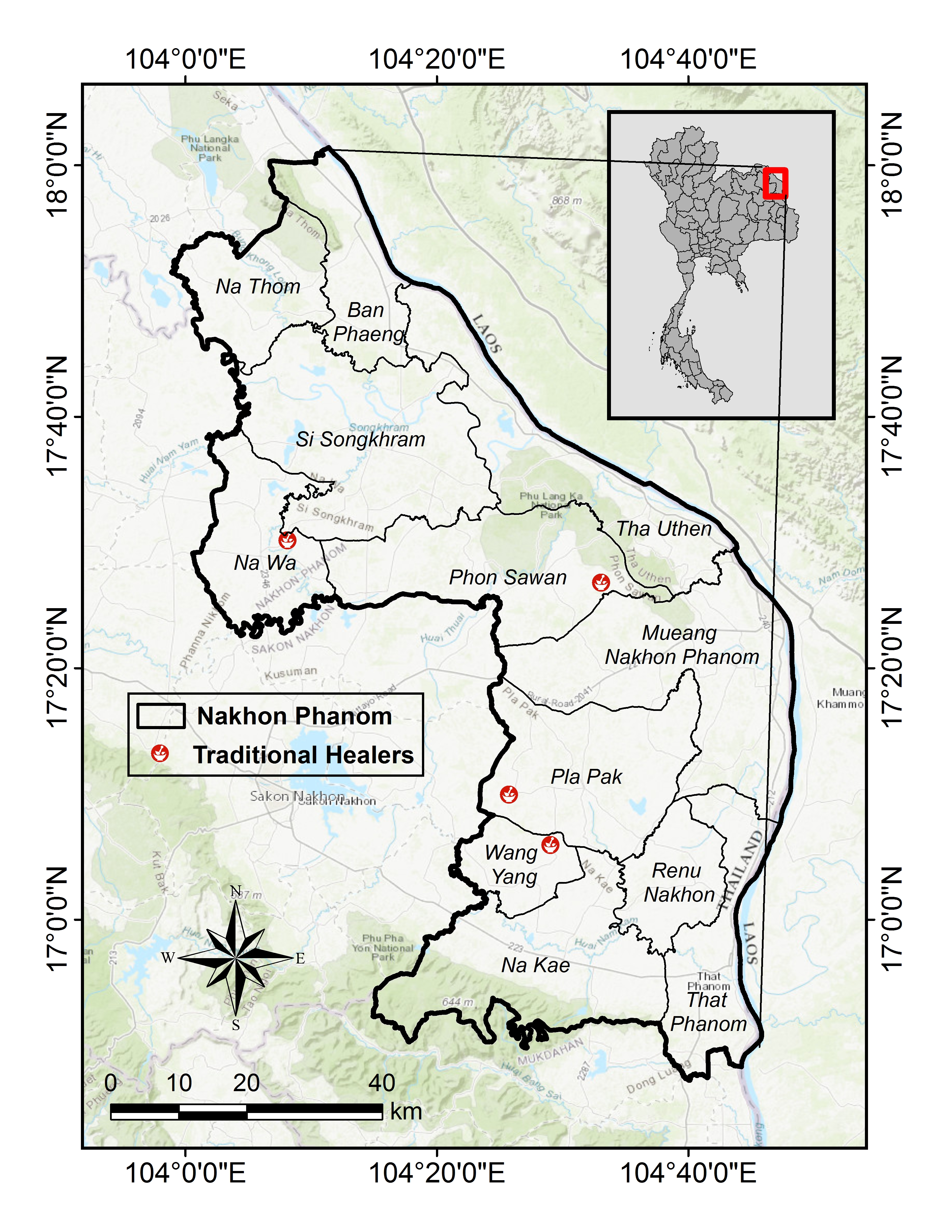 Figure 9: Map showing the survey of traditional healers in Nakhon Phanom province