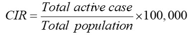 The present study analyses the COVID-19 trends, cumulative incidence rate (CIR), cumulative fatality rate (CFR), recovery rate (RR) of the states and union territories of India (Figure 1). The study also evaluates the spatial distribution and spatial clustering patterns of confirmed and deceased COVID-19 cases at different five periods at the district level using Global Moran's I, Getis-Ord Gi* and Anselin local Moran's I index method to investigate the high-risk and low-risk clusters.