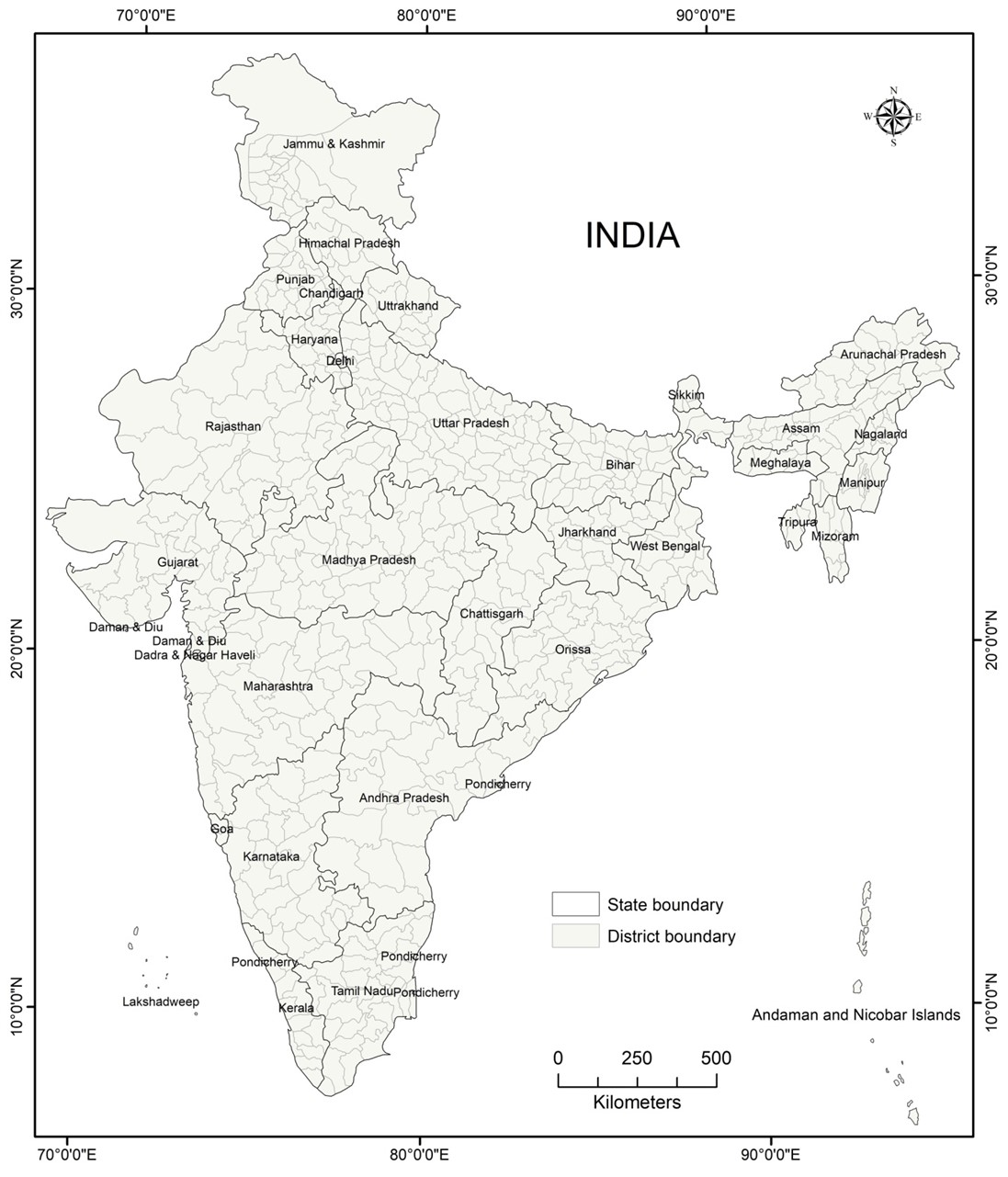 In India, a number of studies spanning across different disciplines of epidemiology, public health and social sciences have been conducted to understand the spread of COVID-19 virus and its impact on people. A comprehensive study in the states of Tamil Nadu and Arunachal Pradesh [22] found that children and adults in resource-limited settings may transmit COVID-19 more readily to same-age individuals. Kumar [23] proposed a network-based model to predict the spread of COVID-19, considering human mobility patterns through migration and air travel data. The model could be used to estimate resource needs and identify high-risk routes. Some studies in India concerning the epidemic trend of COVID-19 transmission have been regarding the prediction and analysis of COVID-19 positive cases using deep learning [24] and data-driven models [25]. Acharya and Porwal [26] prepared a district-level vulnerability index for prioritizing resource allocation and increasing management efficiency across the country.