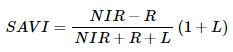 The NIR band in Landsat 8 is band 5, while the red band is band 4. The value of L varies according to the amount of green vegetation present. Whenever there is much green vegetation, the L is 0, and when there is not any green vegetation, the L is 1. In most situations, L=0.5 is sufficient, and it is the default value.