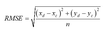 where ais the learnability aspect, b is the flexibility aspect, c is the effectiveness aspect, d is the Attitude aspect, and xi is the amount of the I successful respondents, xi =[0,1, â¦, n]. Table 2 shows the usability level classification of the AR application. Then the coordinate accuracy of the models and the real-time location need to be calculated using Root Mean Squared Error (RMSE), which can be seen in the Equation 3 below: [19] and [20]: