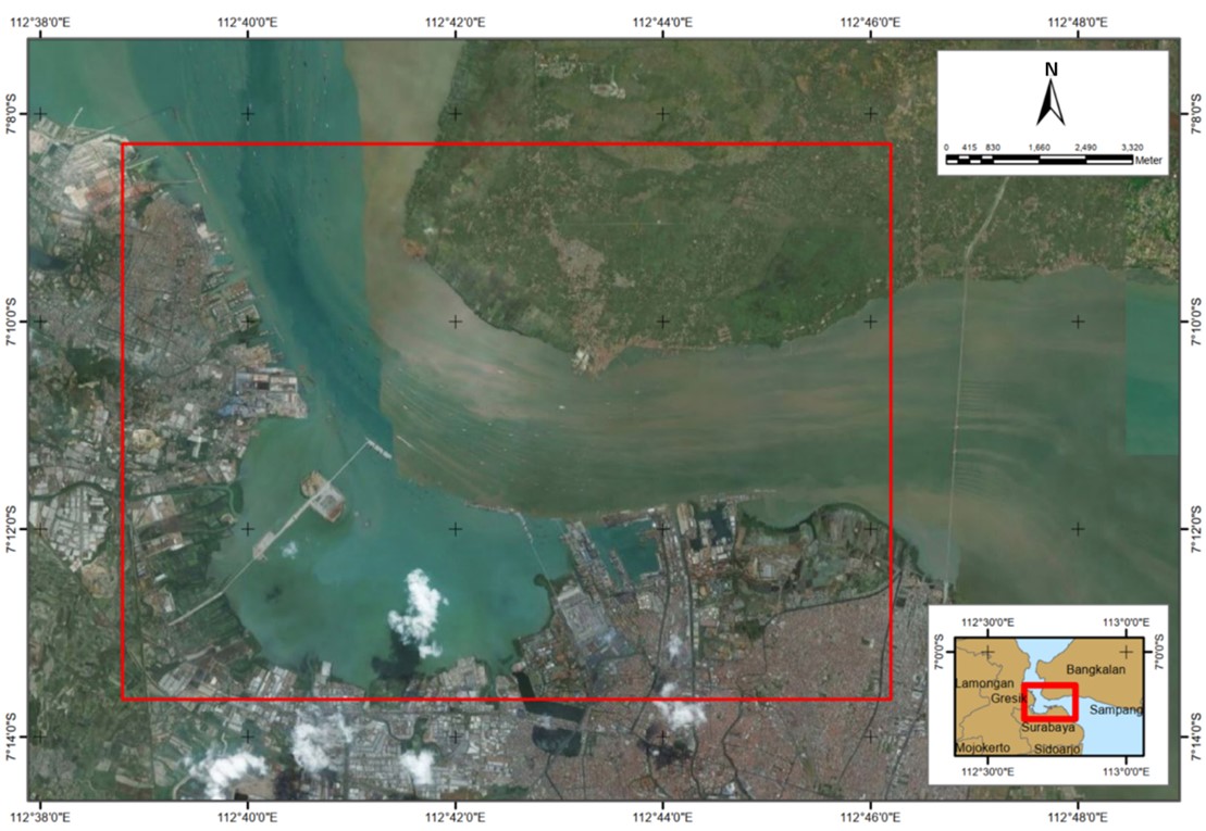 The basis of this research uses data in the form of a marine map, namely the National Sea Map Sheet Number 84 of 2016 [13], scale 1:12500, which is located in the waters of the Madura Strait, more precisely around Lamong Bay with an area of about 134 Km2. The coordinate limits of the research area are 7°8â²17.42" - 7°13â²38.64" S and 112°38â²47.81" - 112°46â²11.54"E as shown in Figure 1.