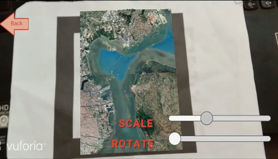 The results of the AR technology implementation are two mobile-android-based applications, namely MARS and MARSGPS. The MARS application uses a QR Code to start the visualization, registered in Vuforia software earlier (Figure 3). Using image tracking, users can interact with the 3D model by zooming in or out and rotating clockwise or counterclockwise in real-time by adjusting the scale in the bottom right corner. Also, the users can return to the main menu with the back button in the upper left corner. Figure 4 Visualizes the 3D model from the image-based MARS application by scanning the QR Code.