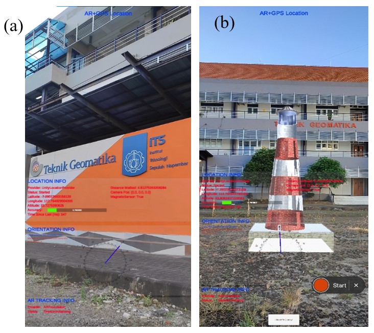 Figure 5: (a) MARSGPS Application presenting the location information and (b)three-dimensional modelling