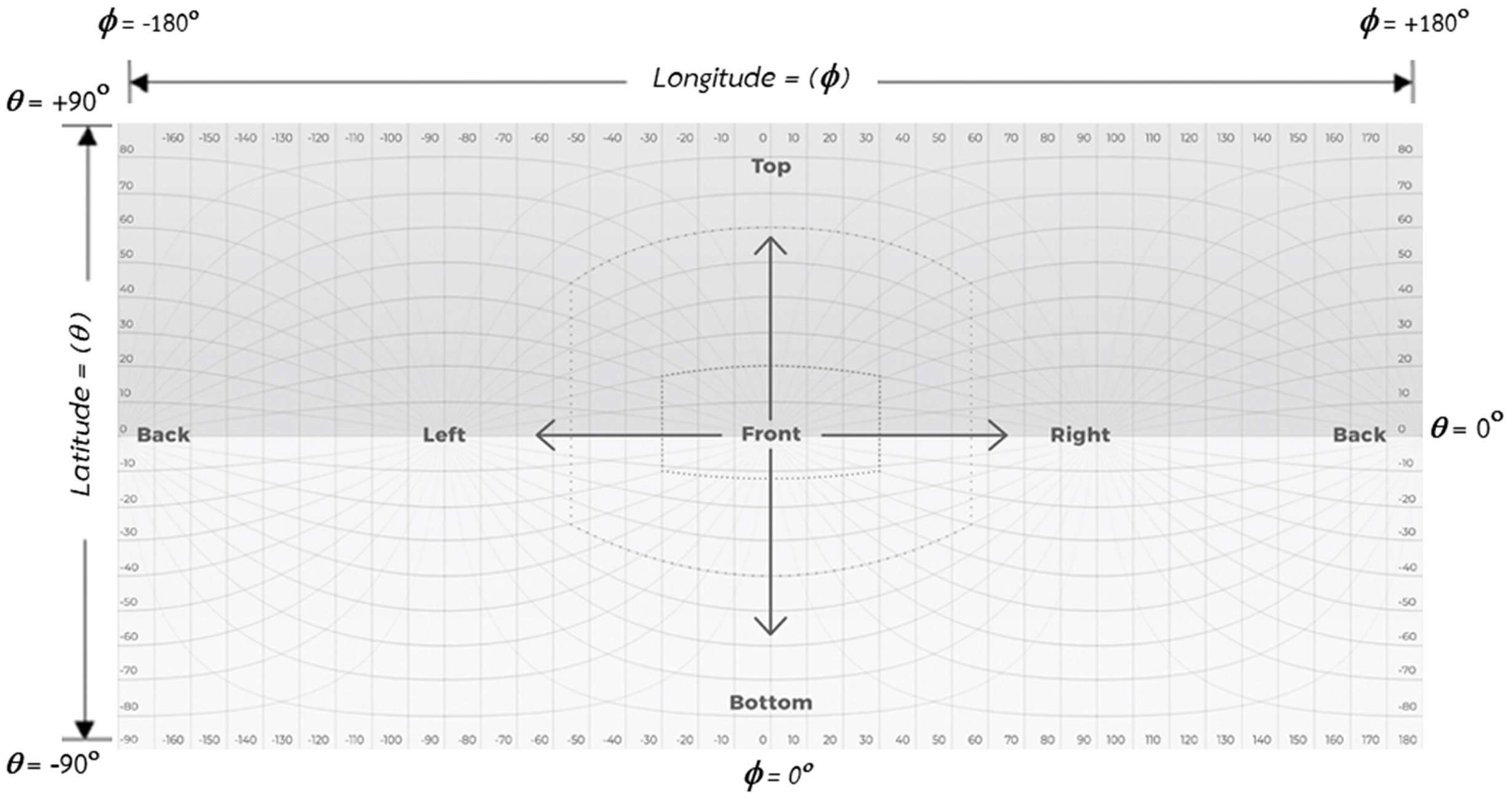 Figure 5: Equirectangular mapping projection and coordinate system that utilizes geographic coordinates